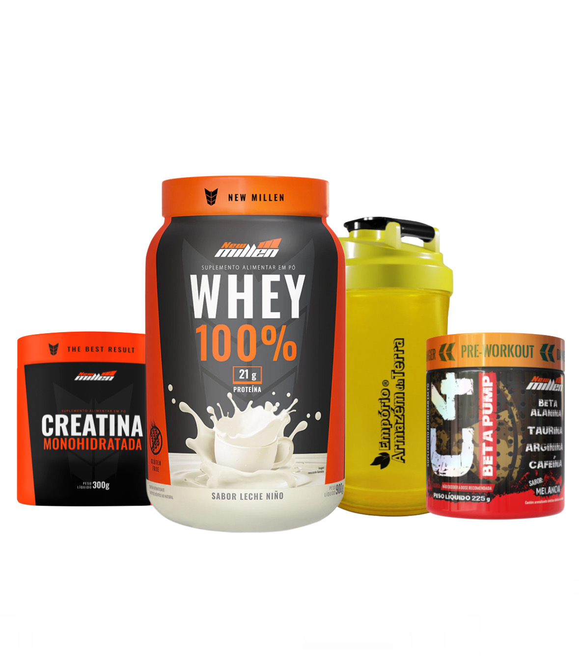 COMBO COMPOSTO POR WHEY 100% 900 G POTE + CREATINA 300 G + C4 PRÉ TREINO 220 G + BRINDE (a cor pode sofrer variação de acordo com o estoque)